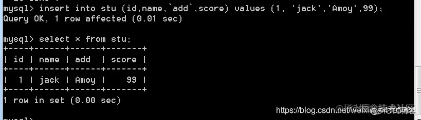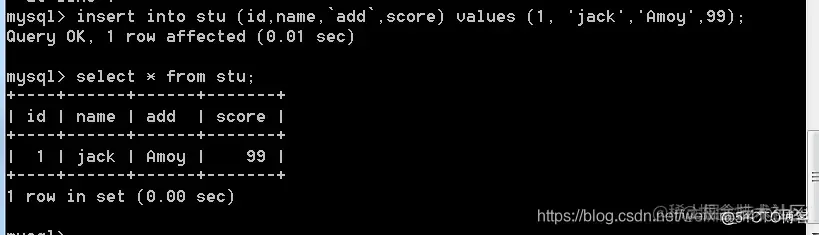 语法: insert into 表名(字段名,字段名,...) values(值1,值2,...);