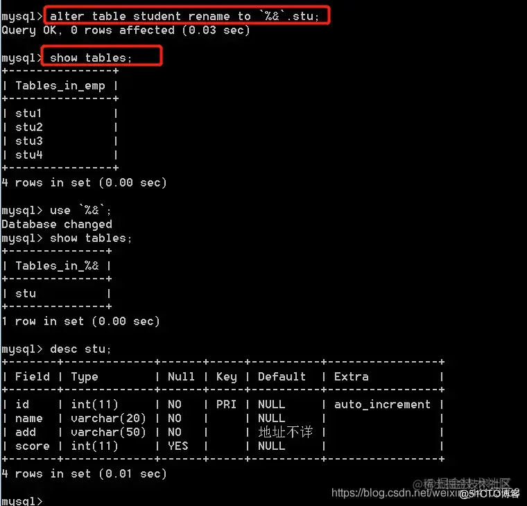 如果表名和字段名用了关键字,特殊符号,要用反引号括起来。 例: