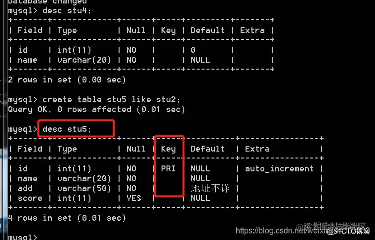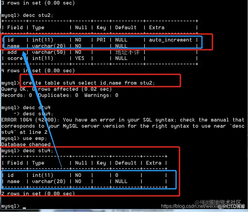 语法二: create table 新表 like 旧表; 特点: 只能复制表结构,不能复制表数据。