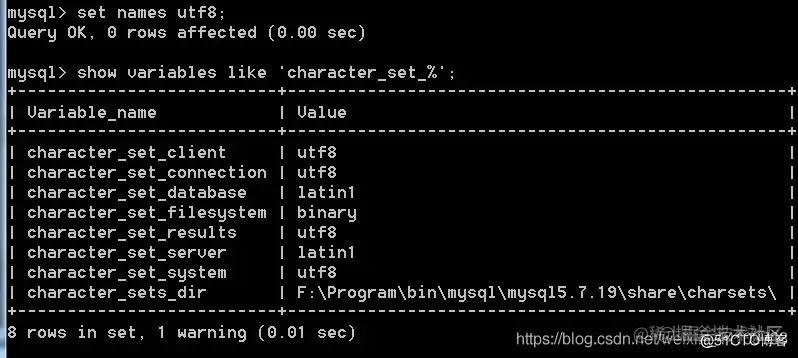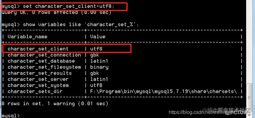 更改接收客户端指令编码: set character_set_client=编码格式; :