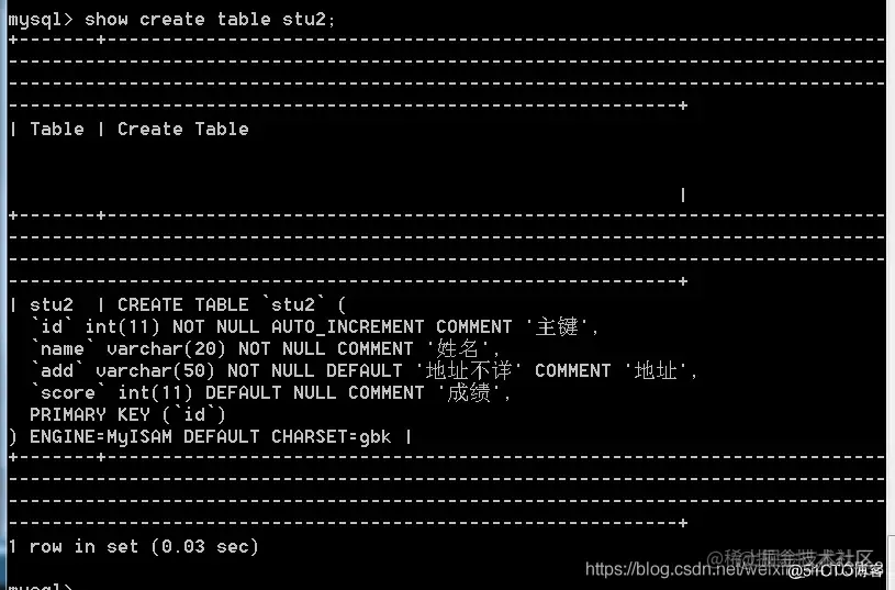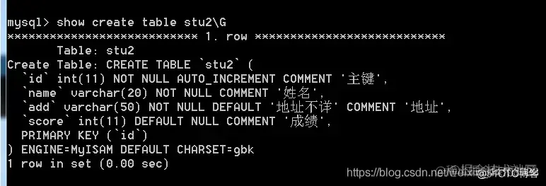 还可以 show create table stu2\G 查询: