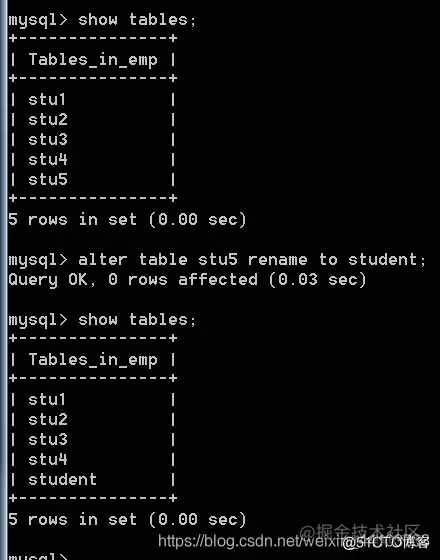 - 修改表名,语法: