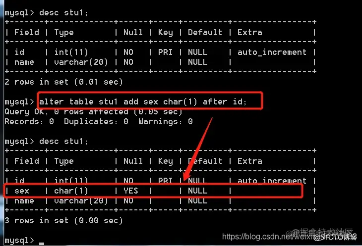 - 添加字段,语法: