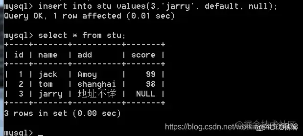 当字段为空值时,写null,为默认值时写default: