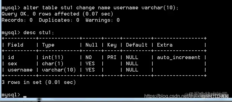 - 修改字段(改名):