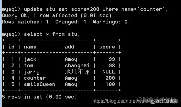语法: update 表名 set 字段=值 [where 条件]