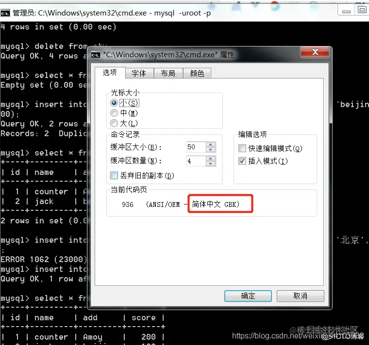 可以使用命令 set names gbk; 将服务端,所有编码全部都以gbk的编码形式。
