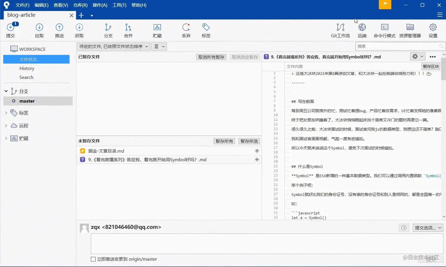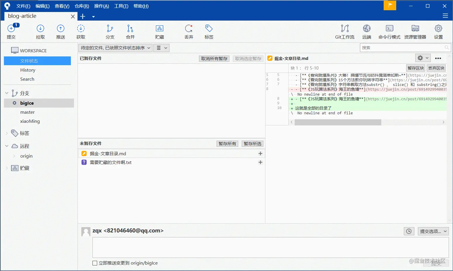 1,暂存所有或暂存所选==>填写提交说明==>提交==>推送至指定分支
