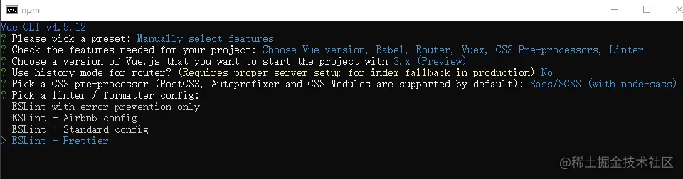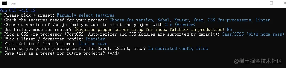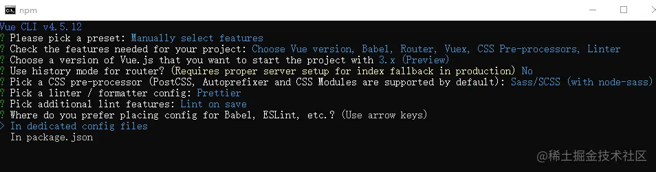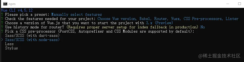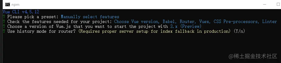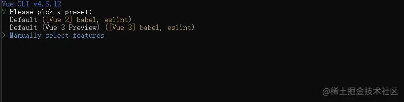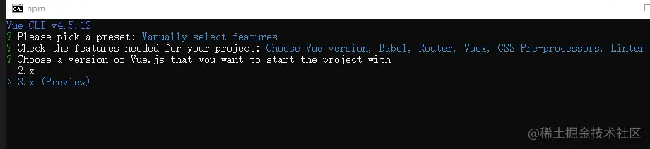4、选择要创建的vue的版本,我们选3.x