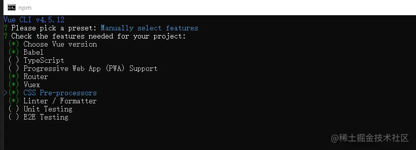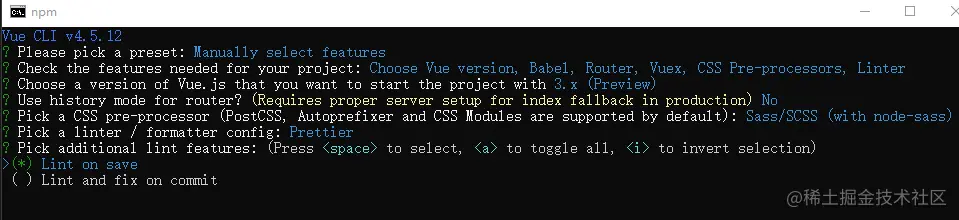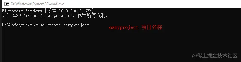 1、输入命令 vue create projectname