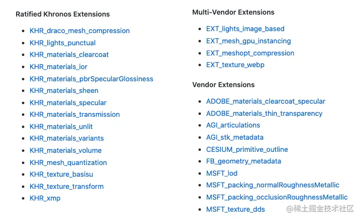 现 Three.js 的 GLTFLoader 尚未支持,Babylon.js 的BABYLON.GLTF2.Loader.Extensions 支持