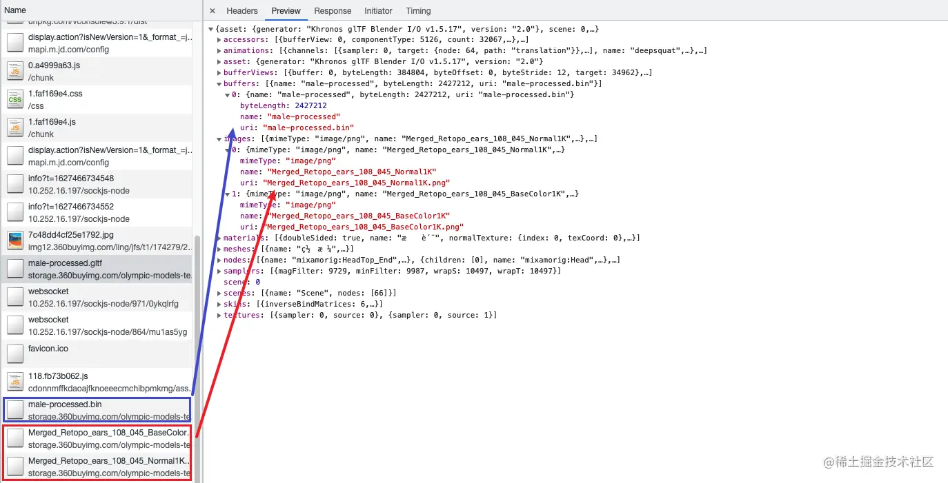 再回顾一下,.glb文件是这么引入外部单独的纹理与二进制文件的