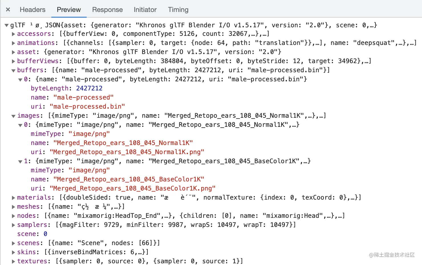 从图中可以看到,当非自包含型的时候,请求glTF文件时,会一同请求图片文件。