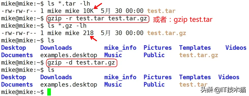 tar只负责打包文件,但不压缩,用gzip压缩tar打包后的文件,其扩展名一般用xxxx.tar.gz。