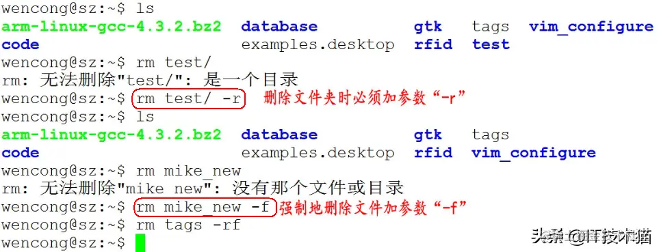 10) 删除文件:rm