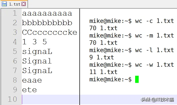 14) 计算文件行数或字数:wc