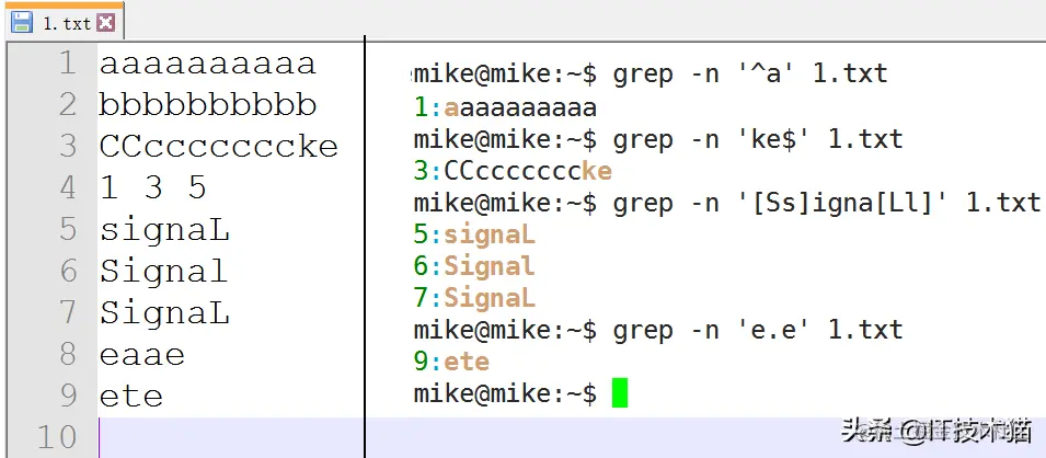 在grep命令中输入字符串参数时,最好引号或双引号括起来。例如:grep'a '1.txt。