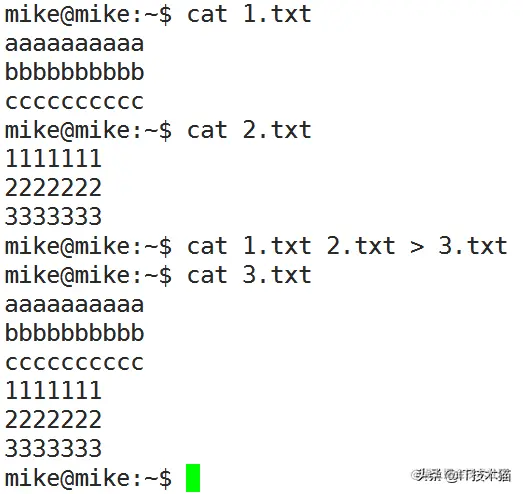 12) 查看或者合并文件内容:cat