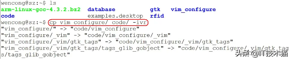 cp vim_configure/ code/ -ivr 把文件夹 vim_configure 拷贝到 code 目录里: