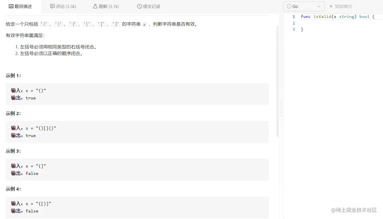 存储左括号和右括号的映射,用栈统计左括号,出现左括号就入栈,出现右括号就和栈顶在 map中映射的右括号比较,如果匹配就出栈,不匹配返回 false,最后遍历完的栈为空,则返回 true,否则返回 false。