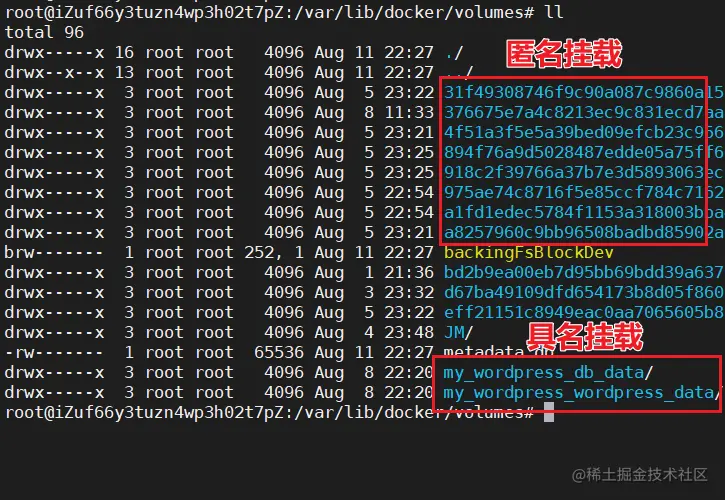 就是 -v后面带的参数若只写容器中的路径(匿名挂载)或者写了一个代号,指定容器中的路径(具名路径)