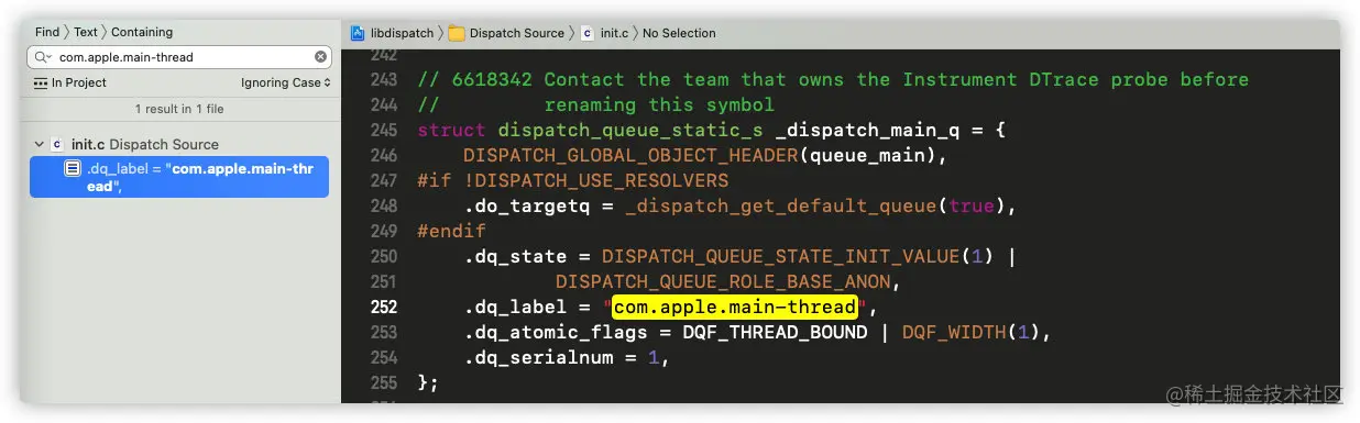 我们发现,创建队列时,我们自定义的label能够打印出来,那么dispatch_get_main_queue的label字符串com.apple.main-thread是否在源码中也有体现呢?