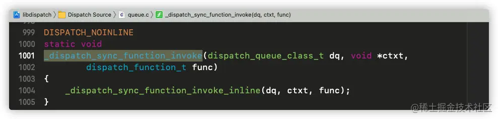 发现走的是函数_dispatch_sync_f,搜索_dispatch_sync_f(dispatch_queue_t: