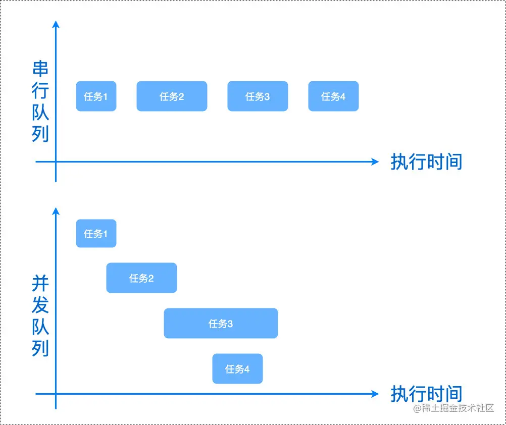 串行队列和并发队列区别如下图所示: