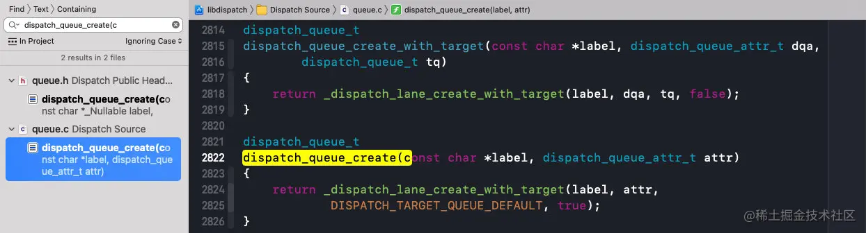 在libdispatch源码中搜索dispatch_queue_create(const;