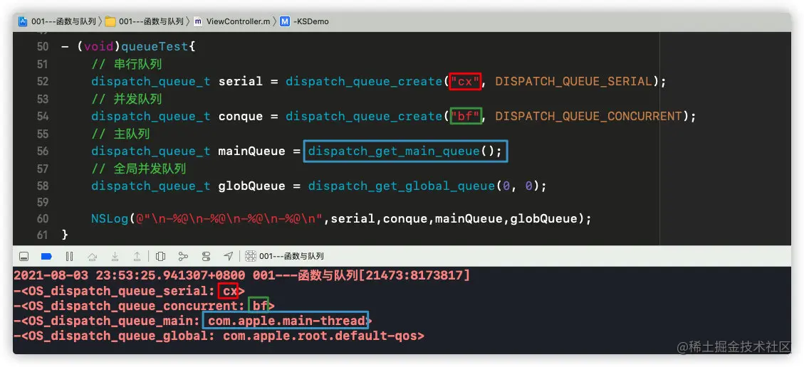 dispatch_queue_t类型的队列,队列有两种:并发队列和串行队列 - 3.通过