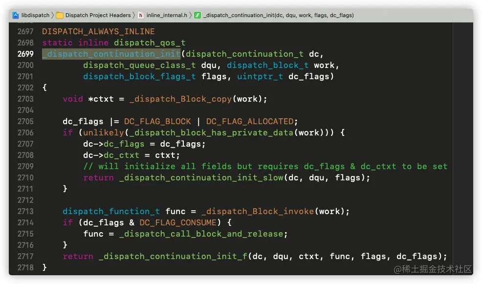 这里边和work有关的方法是_dispatch_continuation_init,点击进入其实现: