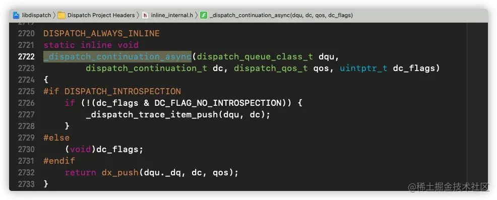那么封装qos之后,如何操作呢?我们点击进入_dispatch_continuation_async方法: