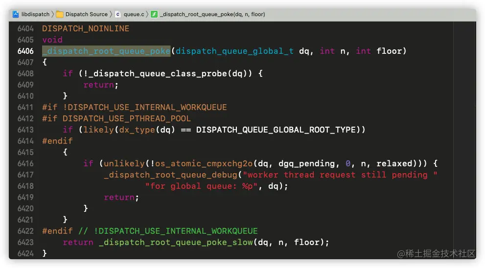 继续进入_dispatch_root_queue_poke函数: