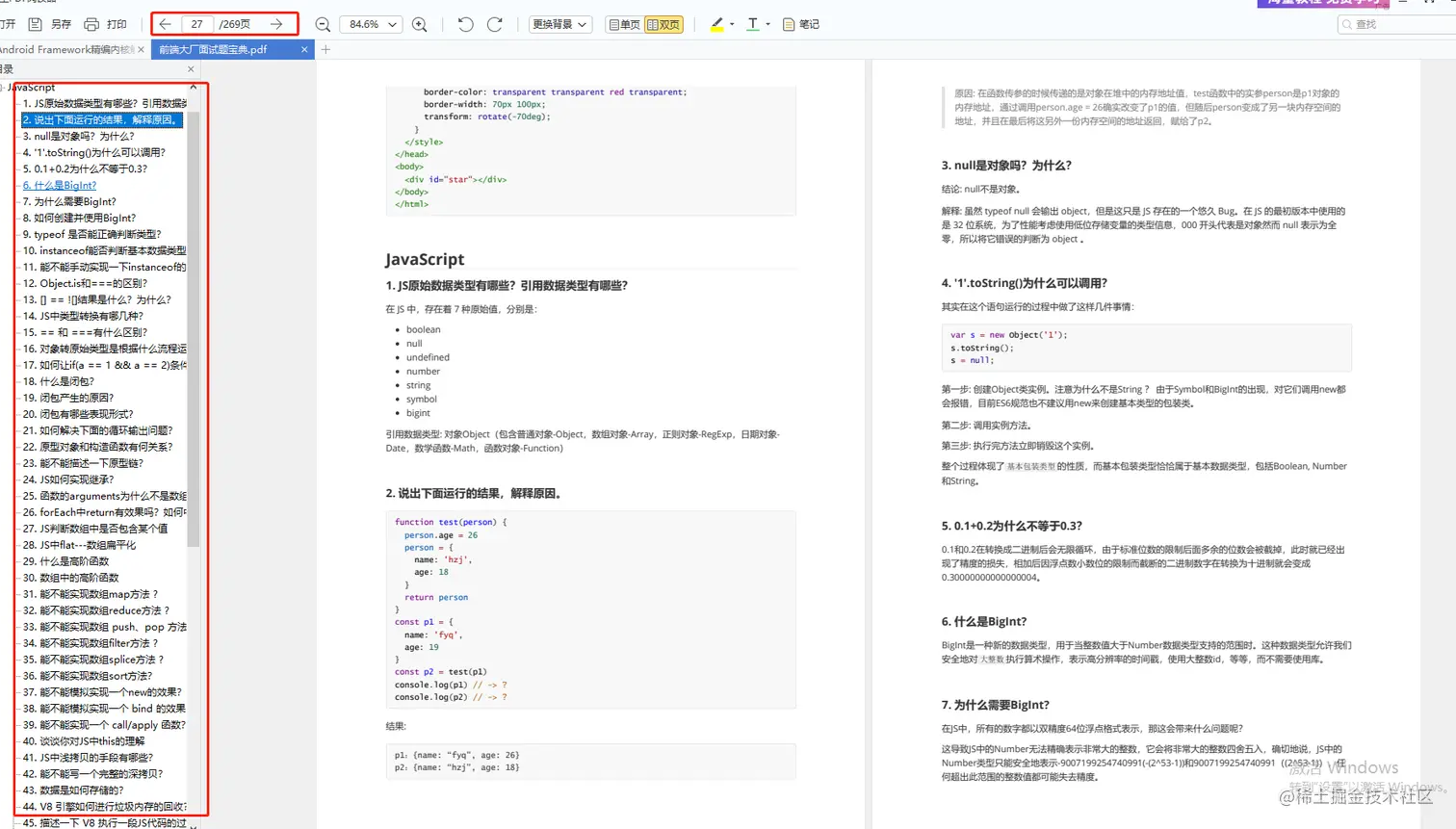 内容包括html,css,JavaScript,ES6,计算机网络,浏览器,工程化,模块化,Node.js,框架,数据结构,性能优化,项目等等。(本文资料 适合0-2年)
