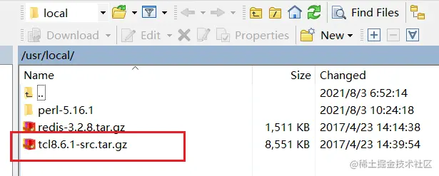 首先将 tcl 安装包拷贝到机器 eshop-cache01 的 /usr/local 目录上。