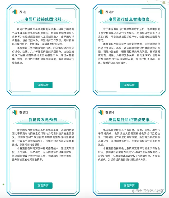 “国家电网调控人工智能创新大赛”比赛时间为8月10日至10月31日,以打造调控领域人工智能应用基础、探索人工智能解决电网运行问题的技术方案为主线,共设置了电网厂站接线图识别、电网运行信息智能检索、新能源发电预测、电网运行组织智能安排四大赛题。大赛总奖金为80万元。每个赛道均设置一等奖1项、每项奖金6万元,二等奖2项、每项奖金4万元,三等奖3项、每项奖金2万元。