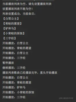 System.out.println("播放列表歌曲已经播放完毕,重头开始播放");