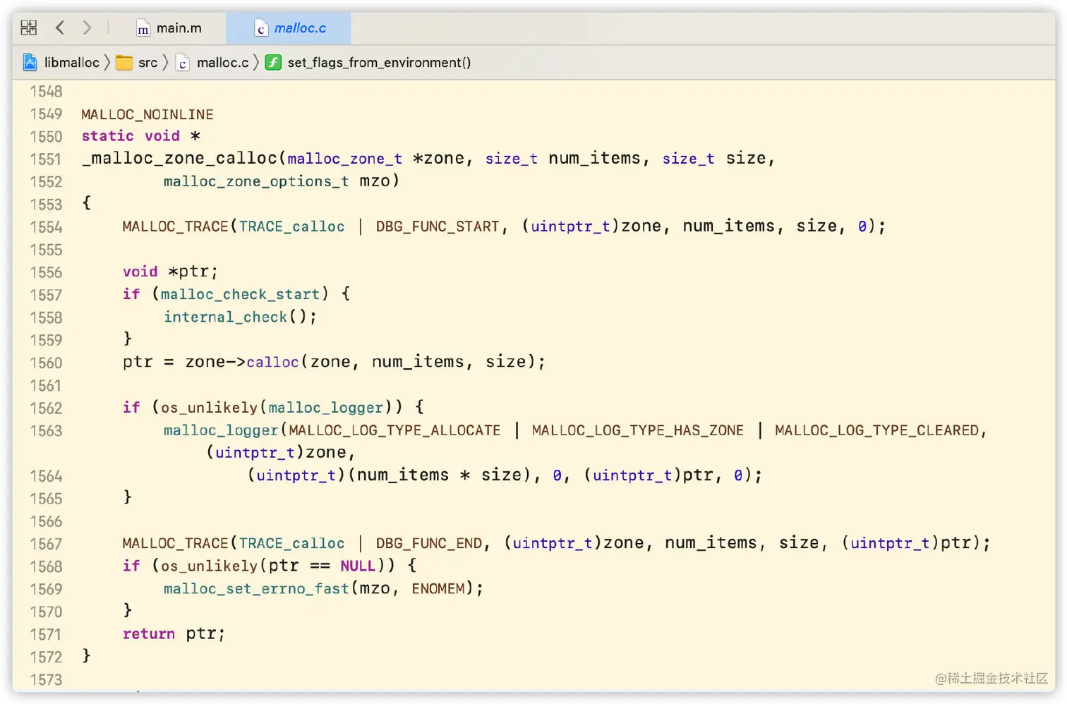 malloc_size查看系统分配内存大小。根据上一篇alloc探索可知先由calloc开辟内存空间,我们先看下calloc的实现
