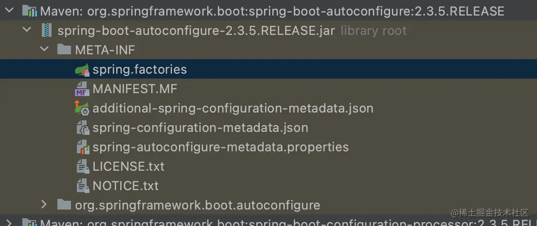 在SPI机制中,是通过在组件下放入一个配置文件完成的,那么Spring Boot是不是也这样的呢?我们就来找一找吧。