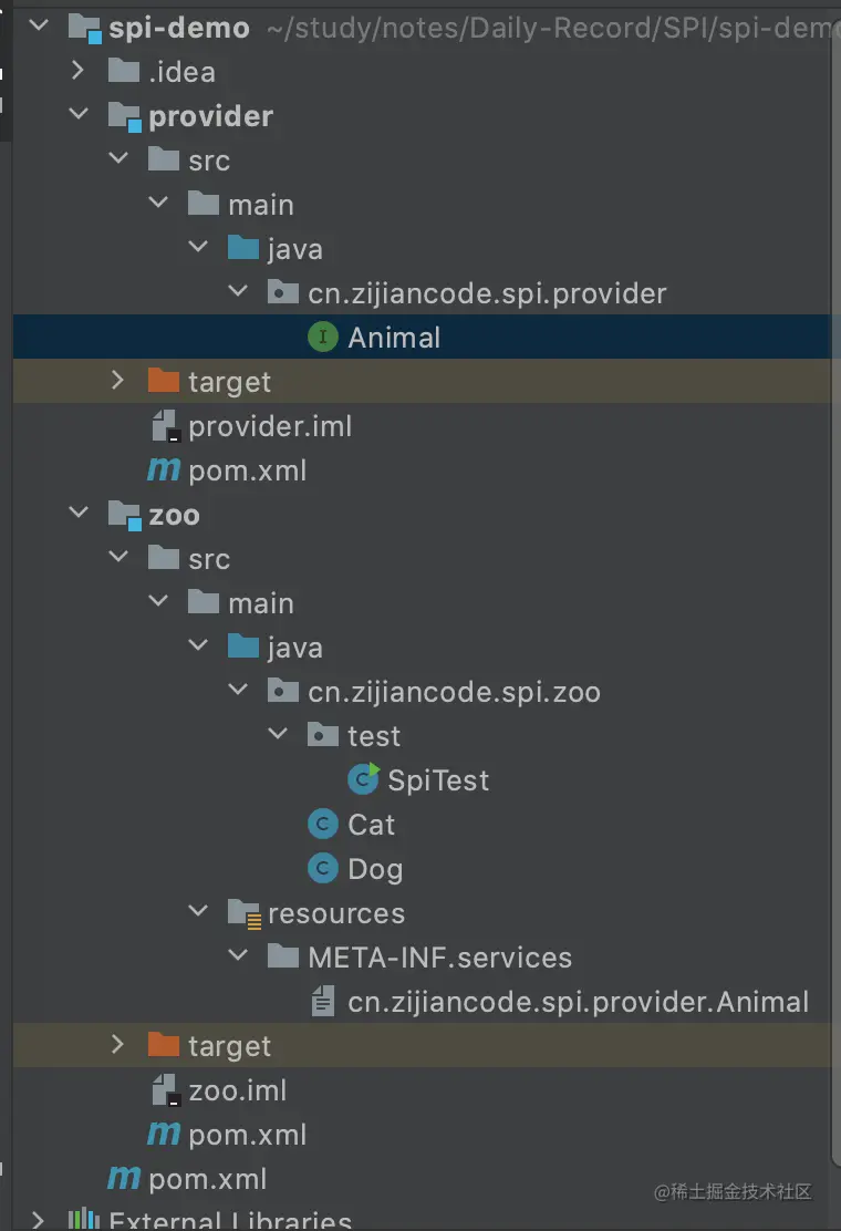 zoo 为使用方,因为我的服务提供接口叫Animal,所以所有实现都是动物~