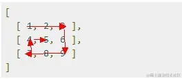 你应该返回:[1,2,3,6,9,8,7,4,5]。如下图所示,遍历顺序为螺旋状: