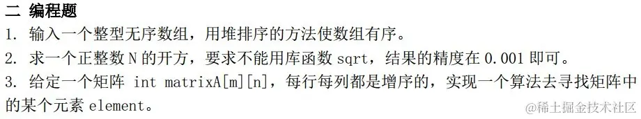 点评:上面第3题还是杨氏矩阵查找,见编程艺术第23章:blog.csdn.net/v_july_v/ar…。既然这么多公司都喜欢考杨氏矩阵查找,那么再给出杨氏矩阵查找一题的扩展:给定 n×n 的实数矩阵,每行和每列都是递增的,求这 n^2 个数的中位数,分析详见:zhiqiang.org/blog/scienc…。 -