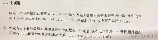 点评:上述第1题寻找满足条件的两个数,见编程艺术第5章:blog.csdn.net/v_JULY_v/ar…;上述第2题见编程艺术第21章:blog.csdn.net/v_july_v/ar…。 -