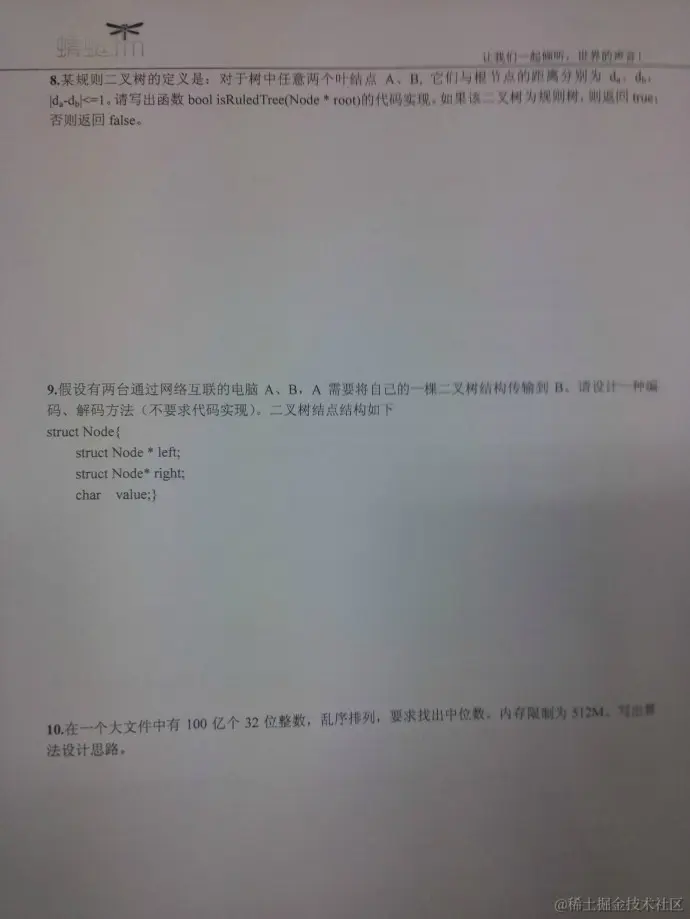 点评:上述第3题等海量数据处理面试题,请参见此文第第一部分第6题:blog.csdn.net/v_july_v/ar…。\ -