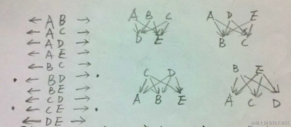 1、宿舍内5个同学一起玩对战游戏。每场比赛有一些人作为红方,另一些人作为蓝方。请问至少需要多少场比赛,才能使任意两个人之间有一场红方对蓝方和蓝方对红方的比赛?答案为4场,参考如下图,作者doc_sgl: