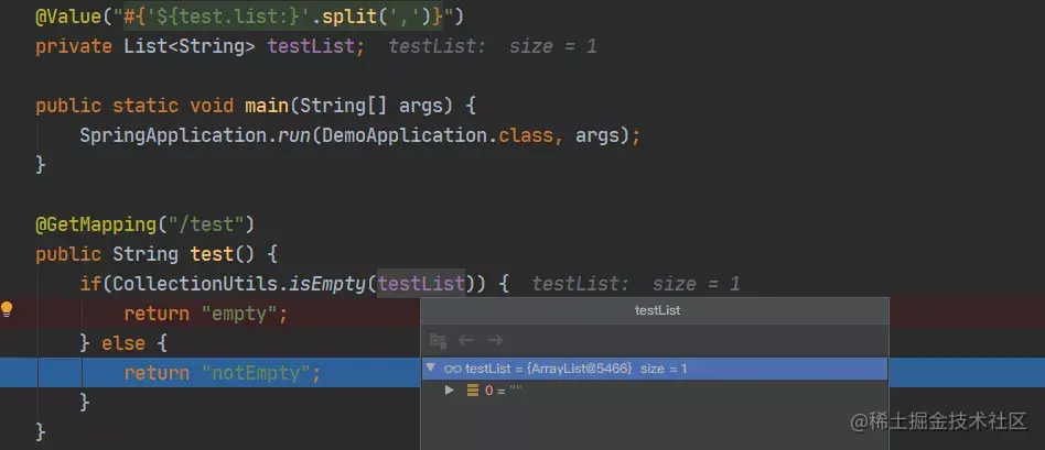 但是这样有个问题,当不配置该 key 值,默认值会为空串,它的 length = 1(不同于数组,length = 0),这样解析出来 list 的元素个数就不是空了。