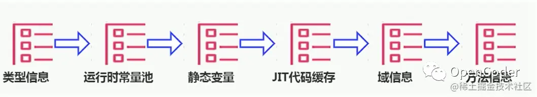 《深入理解Java虚拟机》书中对方法区(Method Area)存储内容描述如下:它用于存储已被虚拟机加载的类型信息、常量、静态变量、即时编译器编译后的代码缓存等。