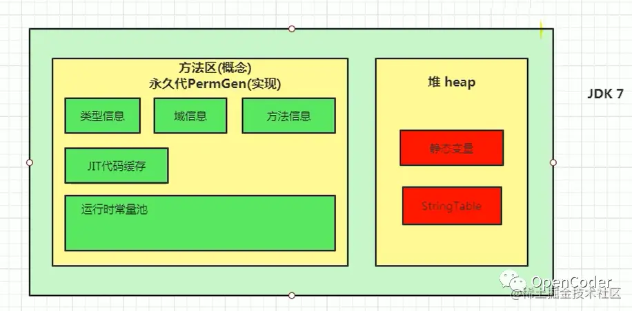 | JDK1.7 | 有永久代,但已经逐步 “去永久代”,字符串常量池,静态变量移除,保存在堆中 |
