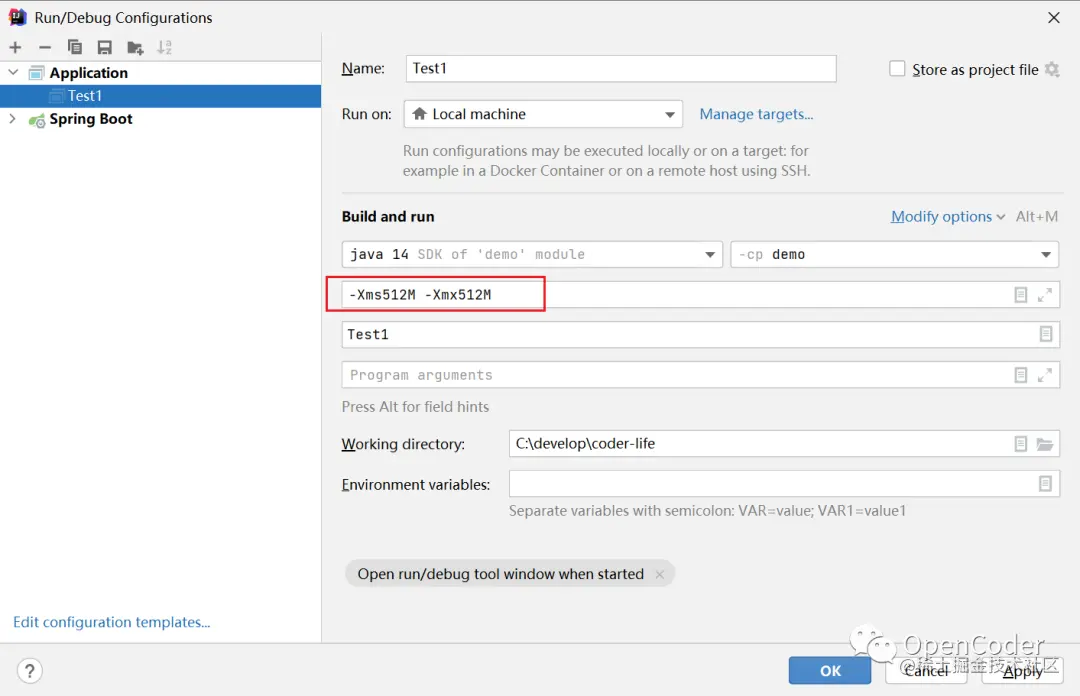 我们可以在启动某个类或项目的时候进行VM Options参数设置:
